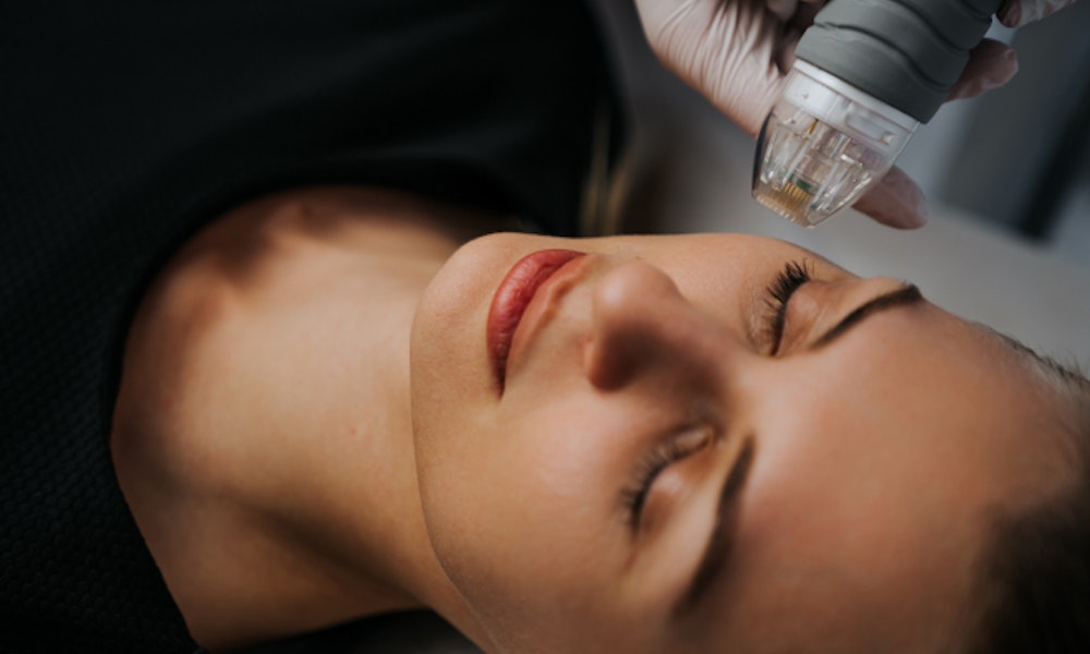 Radiofrequency (RF) microneedling is a minimally invasive treatment that creates micro-channels in the skin and uses radiofrequency energy to apply heat to the deeper layers of the skin. This combination stimulates the production of collagen and elastin to tighten the skin and treat concerns like depressed acne scars, fine lines, wrinkles, large pores, stretch marks, and general skin laxity. RF microneedling can safely be used on the face, neck, and body.